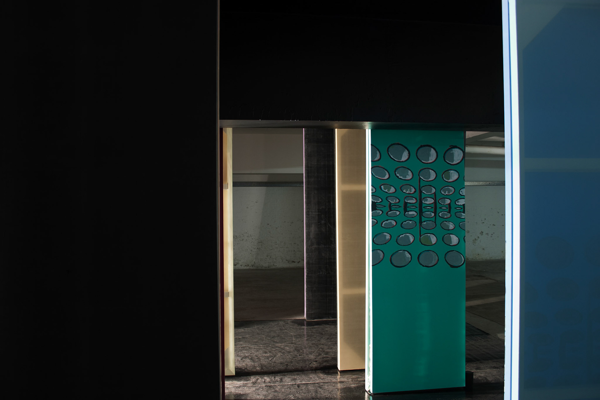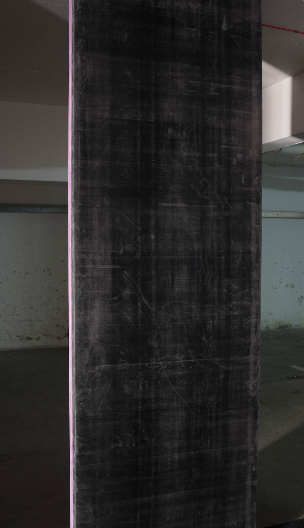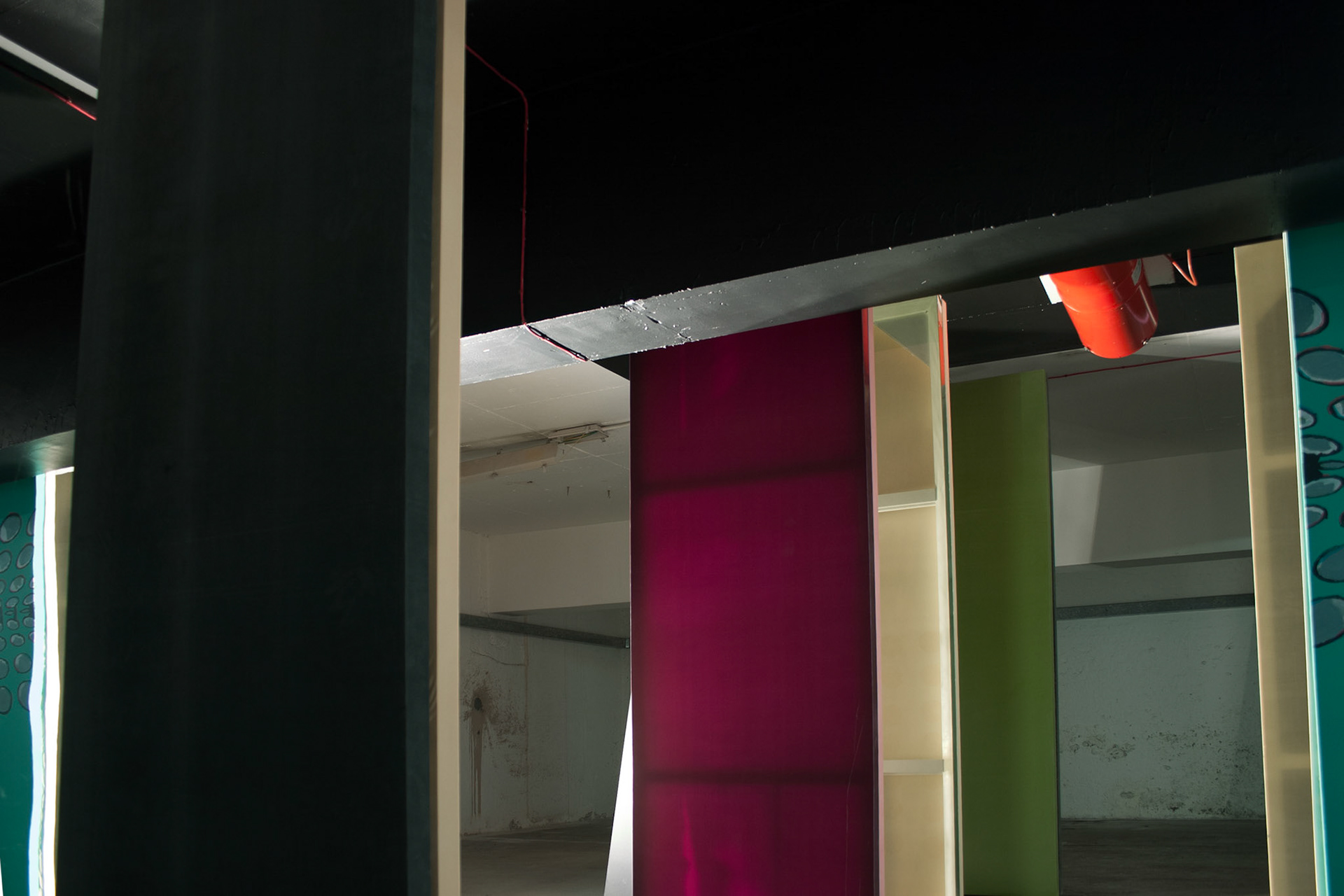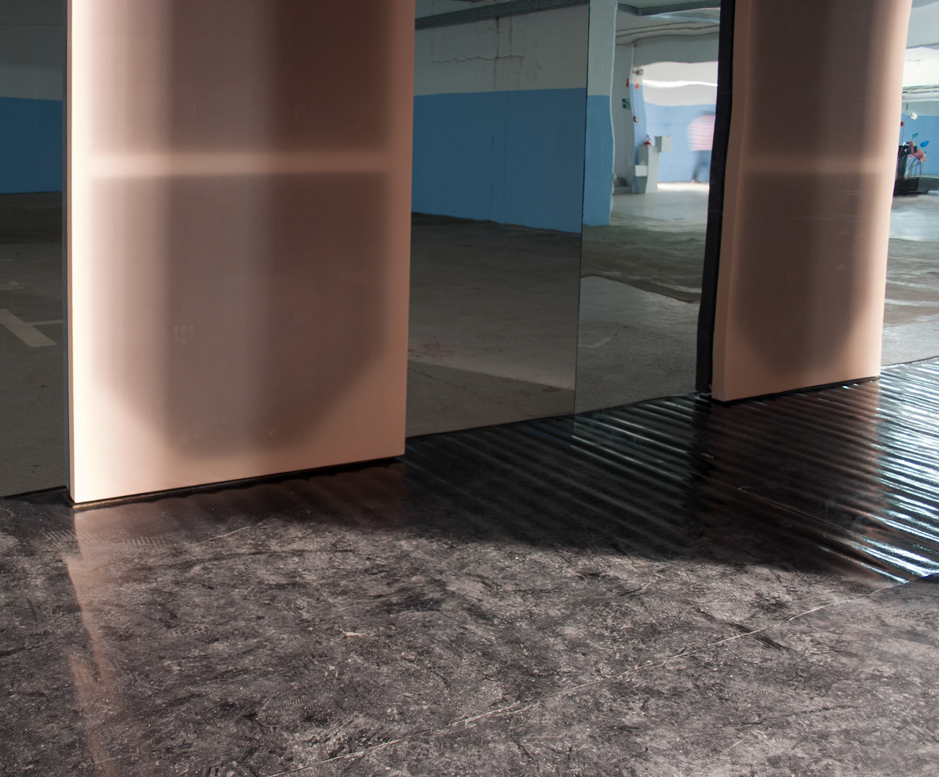 Located under Fleming House at Glasgow’s City Centre, the Underground Car Park can be entered through a doorway under the modern tower. The introduction of a fictional past to an existing heterotopic space harkens to the utopian origin of modernist residential towers, where open spaces freed up by the piling up of apartments, were envisioned as places for leisure and recreation. The abandoned Car Park highlights the abandonment of otherwise profitable urban spaces due to the current economic conditions; while the fictional pool is both a comment on the lack of non-commercial public spaces in the City Centre, and the dissolution of the follies of modernist housing.