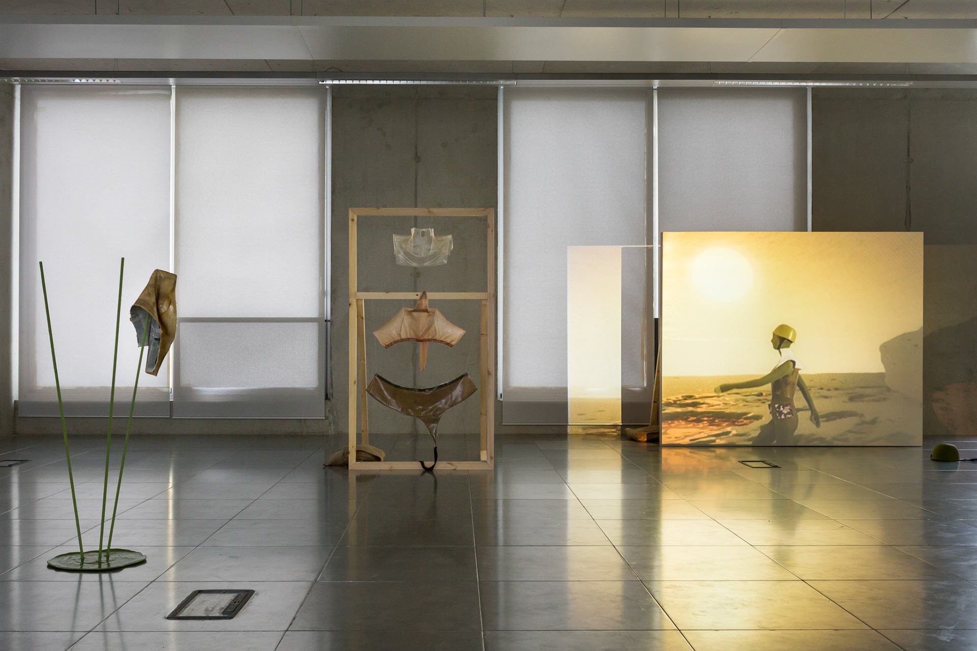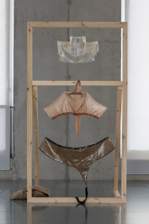AS YOU WERE was a collaboration with artist Carmel O’Brien (with Opera Autonoma) investigating our backgrounds in fashion design, architecture, painting and installation. A sustained dialogue generated a system of syntheses utilising applied surfaces, layered paint and artificial skin as means of creating hybrid garments and sculptural installations within a simulated setting.