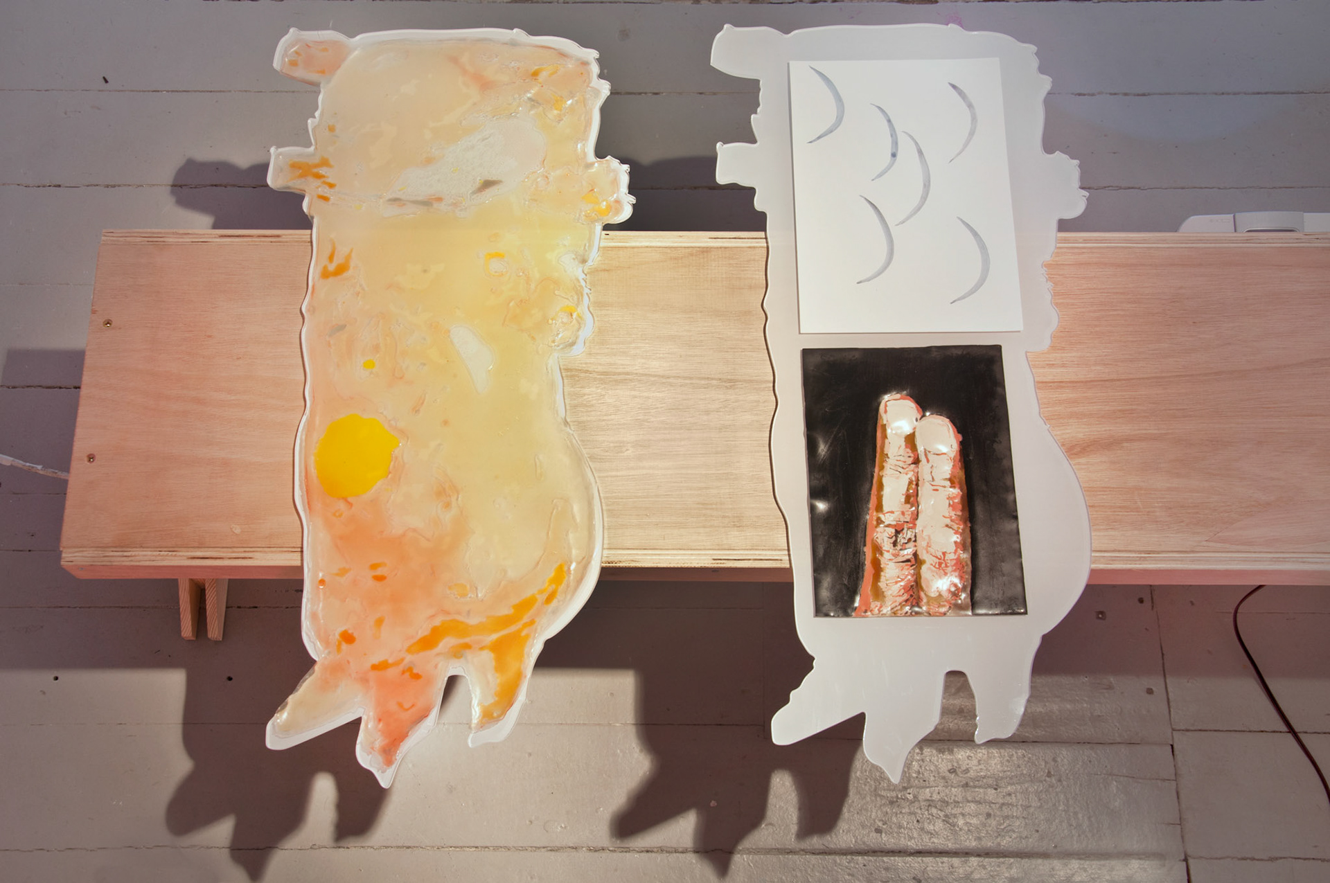 The investigations in both PEAKS and DOUBLE-BLIND aimed to explore location and points in time, employing multiple camera angles, scanning, digital printing lifting and magnification to create work that captured the shifting path between a thought and its object; and the fleeting transformation of ideas into form.